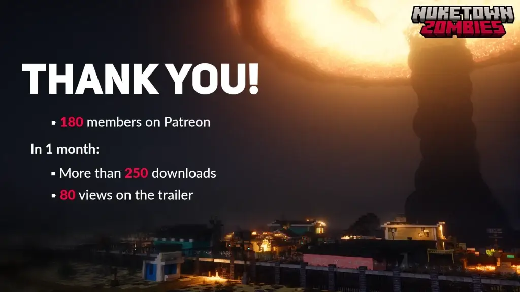 Je n’aurais jamais pensé atteindre ces chiffres pour le projet Nuketown Zombies Minecraft. Mais pour moi, c’est énorme, et je suis vraiment ravi que tant de personnes s’intéressent à un projet comme celui-ci via Patreon. 👀